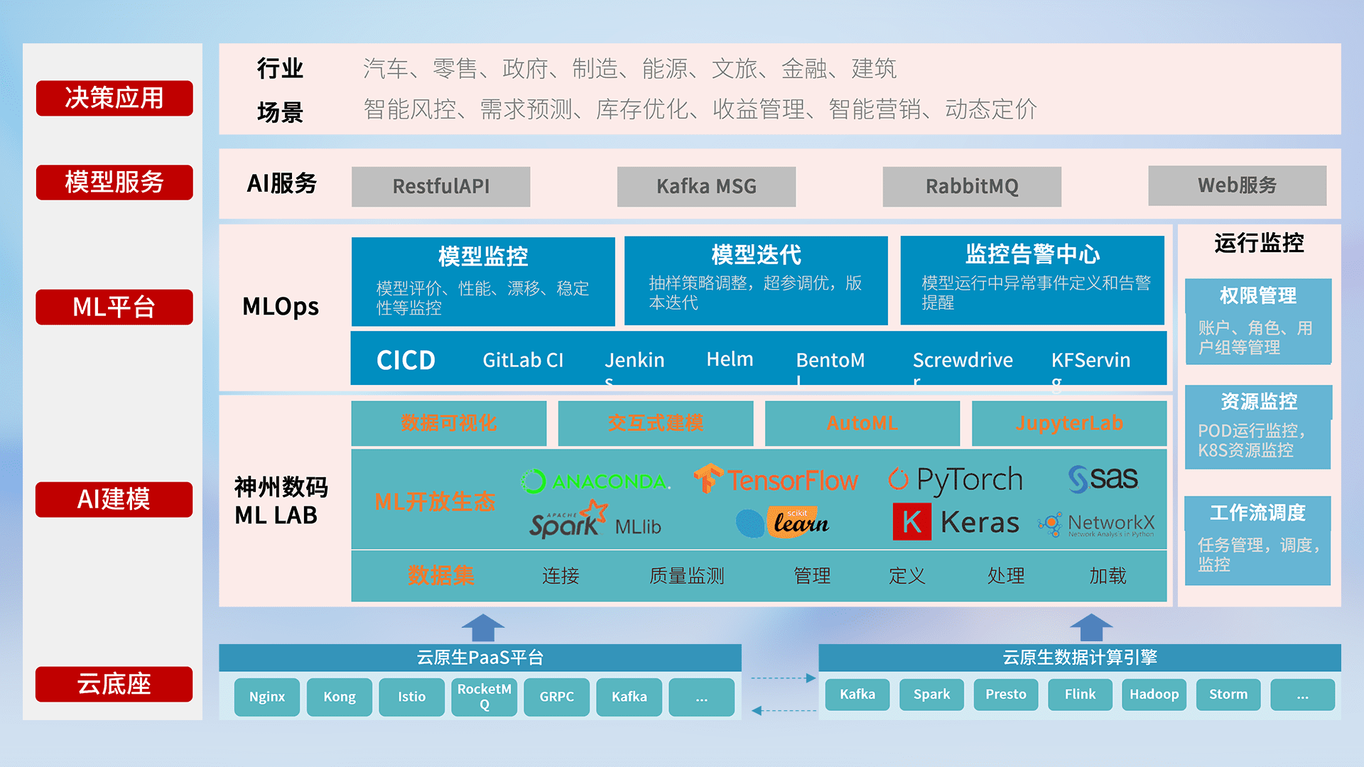 数据+模型双引擎驱动,,面向智能服务场景,,,快速灵活利用AI技术,,,支持业务决策,,,,助力企业智能化转型破局。。